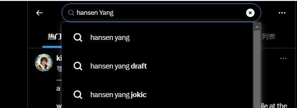 值得一提的是,在某知名社交网站上搜索hansen yang会显示hansen yang jokic(杨瀚森约基奇)的下拉词条。