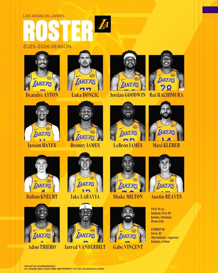 还会有补强吗?😉转播方晒湖人阵容:潜在首发是老4人+新援艾顿