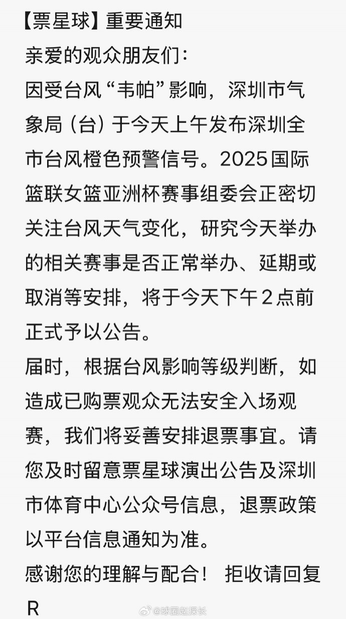 7月20日讯 今天,媒体人@球圈赵探长 在社媒上晒出票星球发布的一则关于女篮亚洲杯的消息。