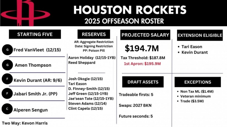 整装待发!火箭14人阵容离硬帽120万&再无空间 还剩两个双向名额