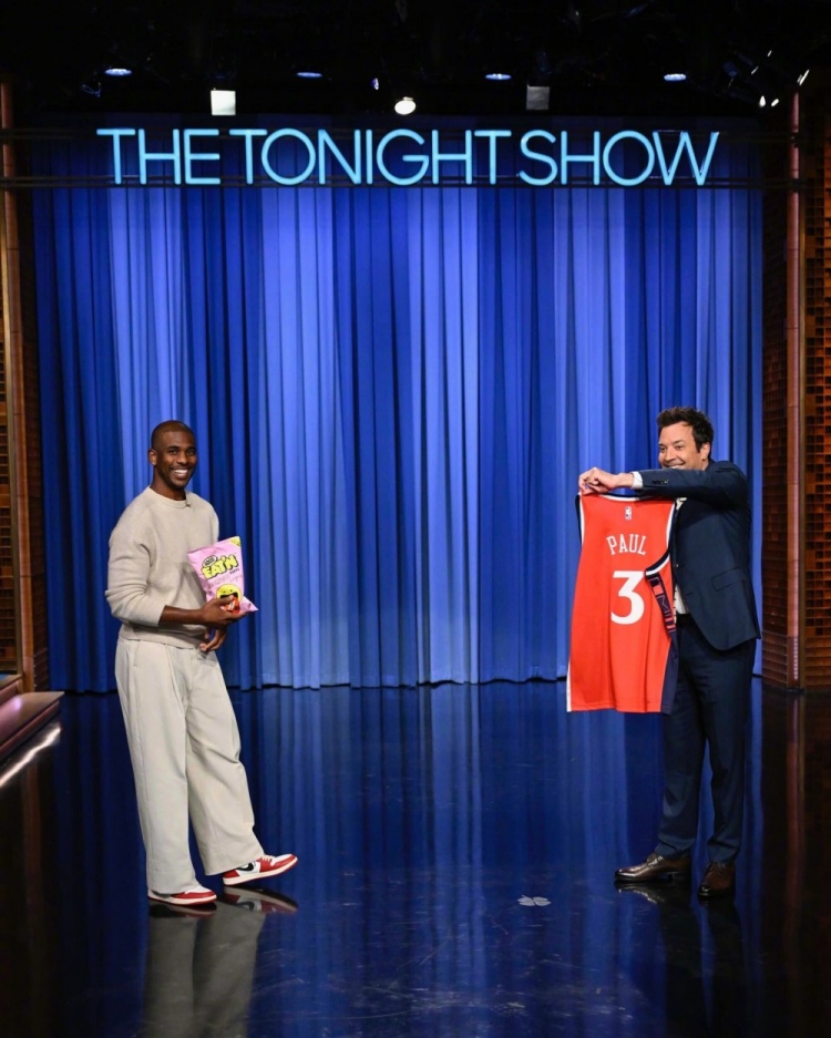 日前,保罗带着3号快船球衣亮相《吉米今夜秀》(The Tonight Show),并与主持人一同合影。