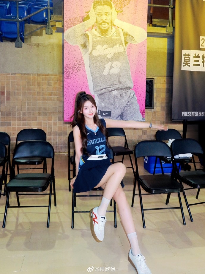 扣篮绝不手软!美女主持人魏欣怡晒莫兰特活动照
