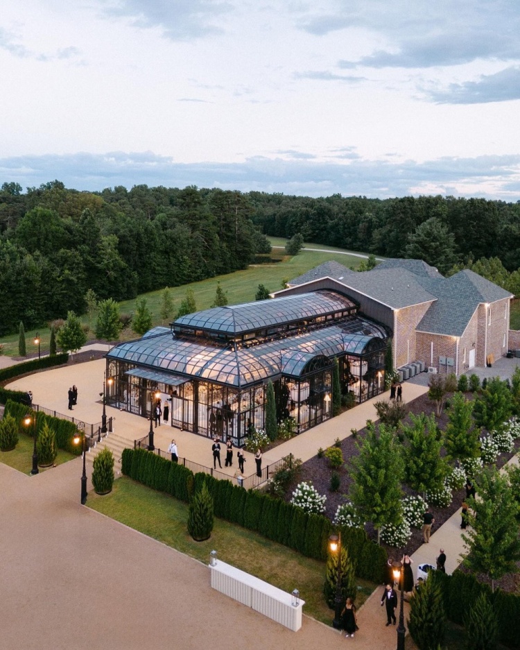 “我们的首要任务是营造氛围和美感——我们希望找到一个美丽、独特且符合我们对这一天愿景的地方。”Marissa说。“当我们看到这个温室风格的场地时,就知道它就是我们要找的。其优雅的建筑带有迷人的法国风情,这对我们来说特别有共鸣——尤其是在我们在摩纳哥订婚之后。”