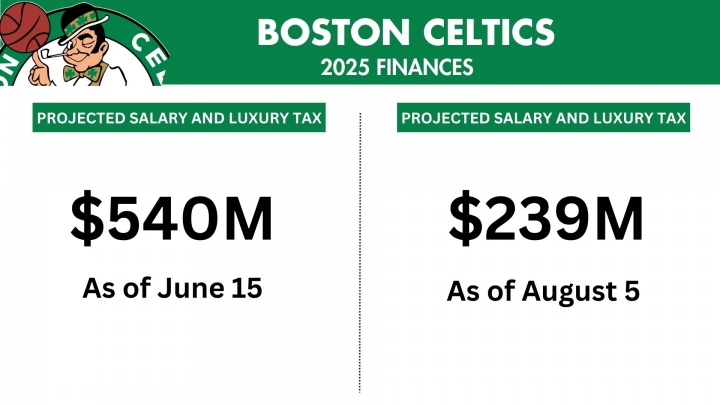 在美国时间6月15日,凯尔特人的受保障薪资加上奢侈税高达5.4亿美元。