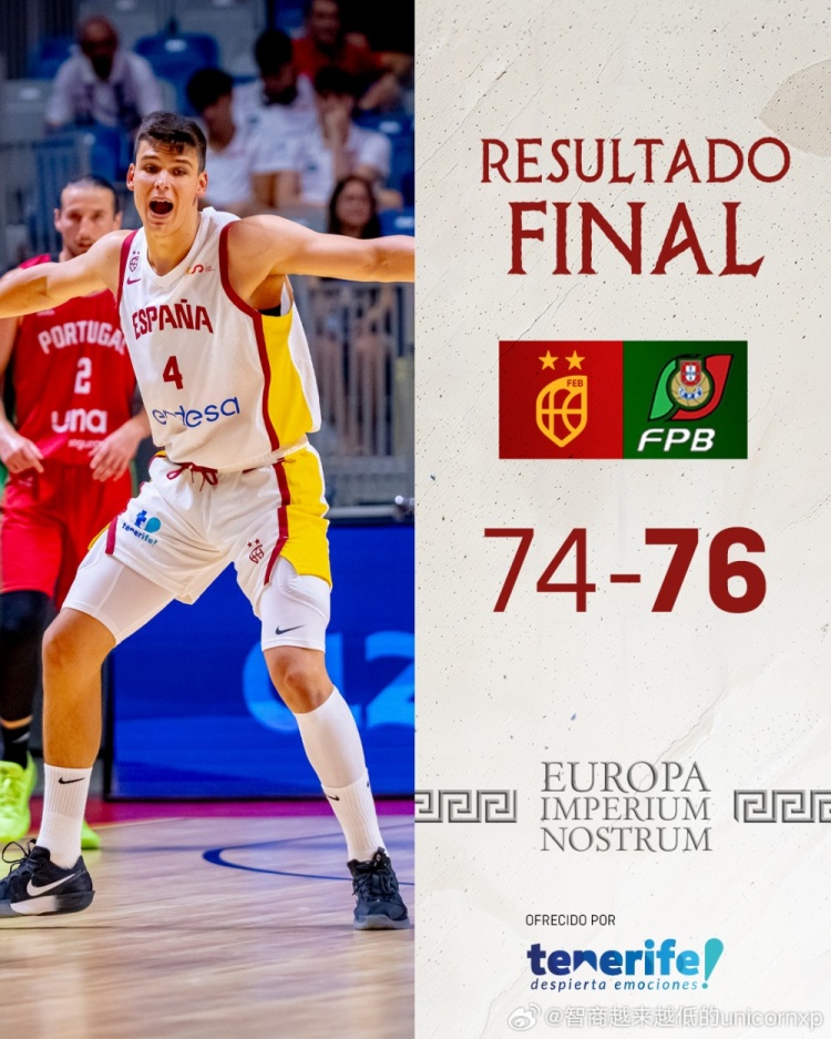 面对同一支葡萄牙男篮,一队74比76输球,二队64比63取得了比赛胜利。