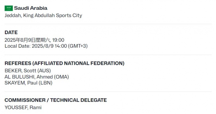 本场比赛的裁判组已经出炉,分别是澳大利亚裁判斯科特-贝克尔、阿曼裁判艾哈迈德-阿尔-布卢希什和黎巴嫩裁判保罗-斯卡耶姆(中国男篮前两场小组赛也有斯卡耶姆)。