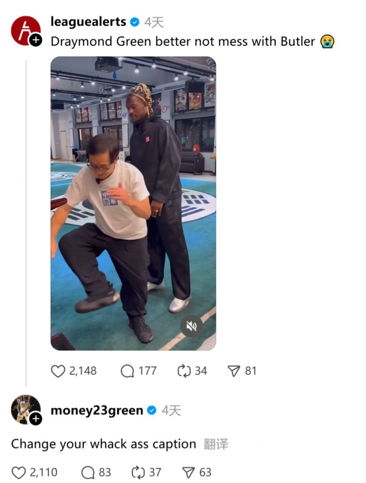 美媒@League Alerts在社媒晒出这段视频并写道:“追梦格林最好别惹巴特勒。”