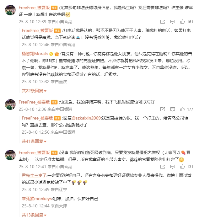 08月10日讯 广东球员徐杰被女网友@FreeFree_被耍版 曝YP多人,出轨劈腿致多人打胎甚至因赌球有几百万负债,徐杰经纪公司对此发出声明。
