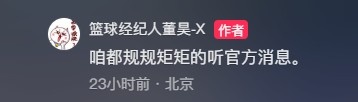 随后,一位球迷留言道:“经纪人没这么大能力能控制徐昕,徐昕要是自己要留下,经纪人还能怎么阻止。要清楚经纪人只是帮忙干事的,至于要干什么事,要听球员本人。”董昊点赞了这条评论。