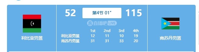 利比亚男篮方面,全队仅有伊斯梅一人得分上双(17分),全队整场投篮66投仅18中。