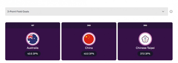 在小组赛阶段,中国男篮三分球80投35中,命中率高达43.8%,排名赛会榜首。其中年轻球员王俊杰三分命中率高达61.5%。