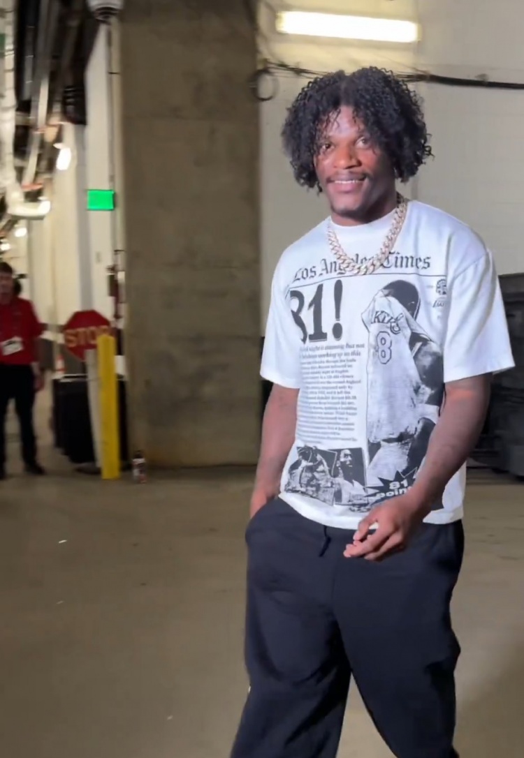 致敬科比!NFL巴尔的摩乌鸦队明星四分卫穿着科比T恤抵达球场