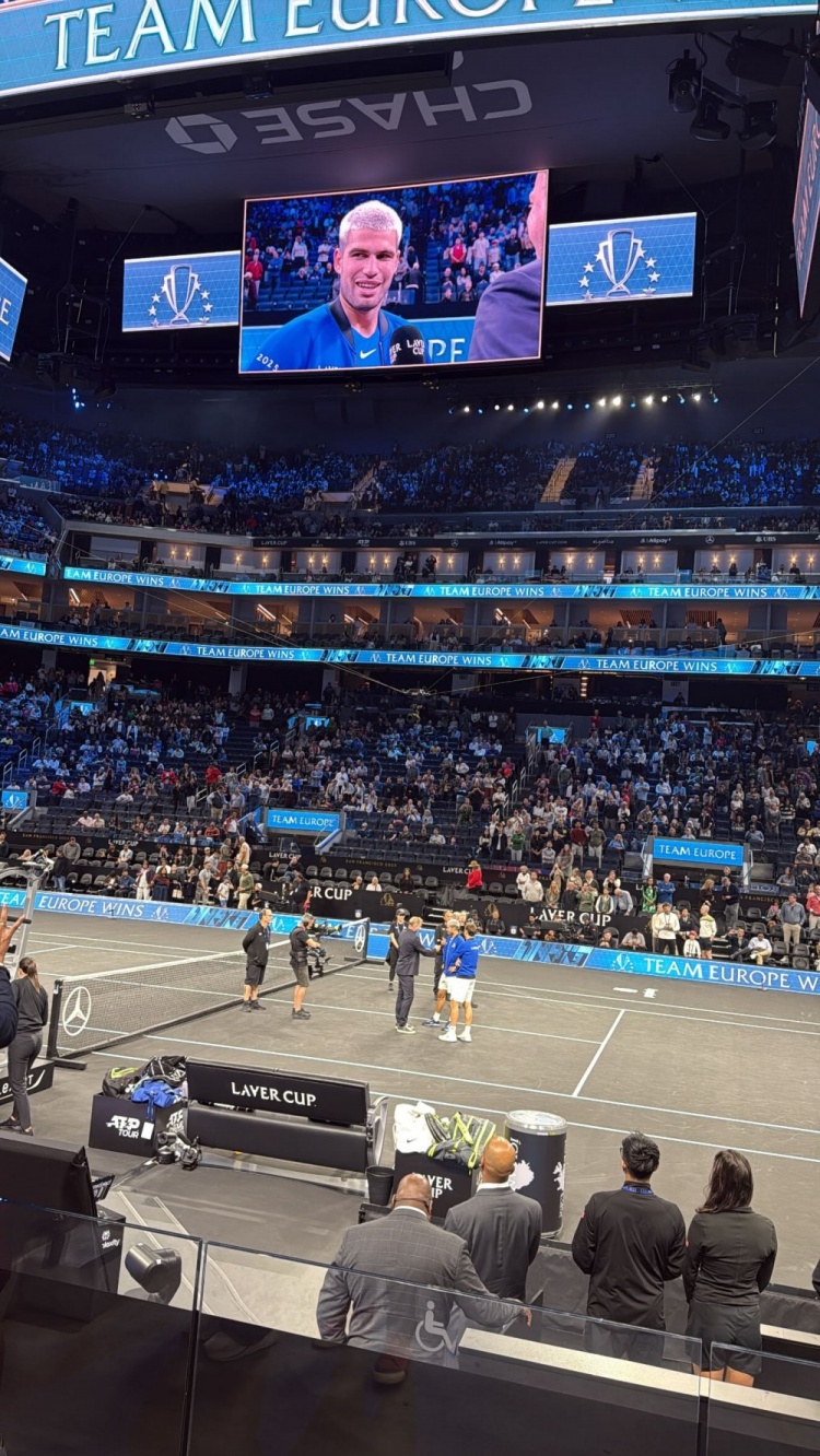 在现场!希尔德在大通中心看阿尔卡拉斯比赛 后者银发造型帅气