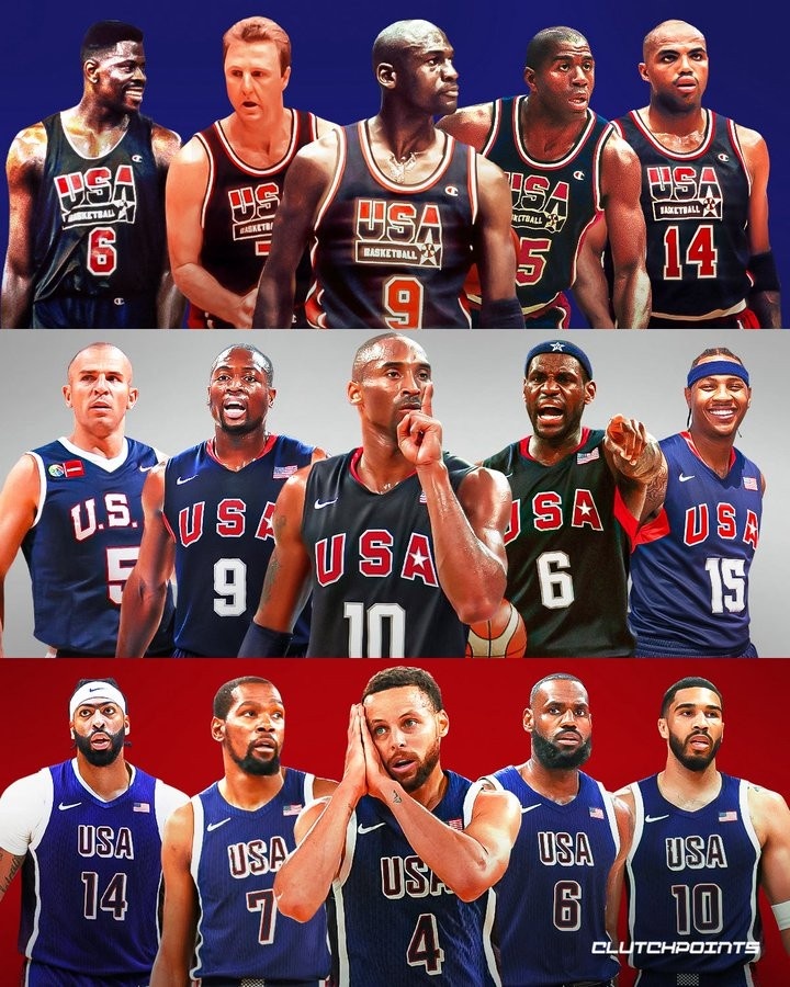 美媒clutchpoints晒出梦一队、梦八队和此前在巴黎夺冠的最新梦之队对比,并写道:传奇梦之队:🔹迈克尔-乔丹🔹魔术...