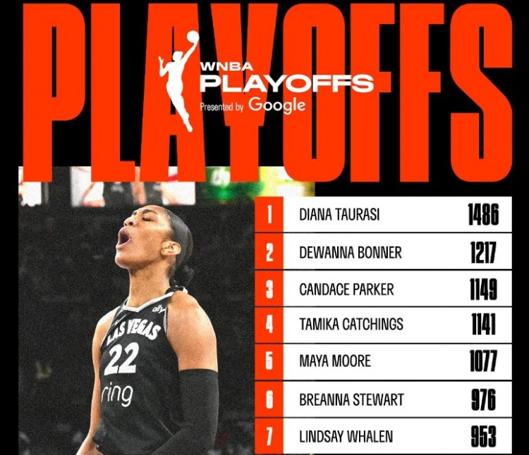 阿贾-威尔逊连超两人 升至WNBA季后赛历史得分榜第8