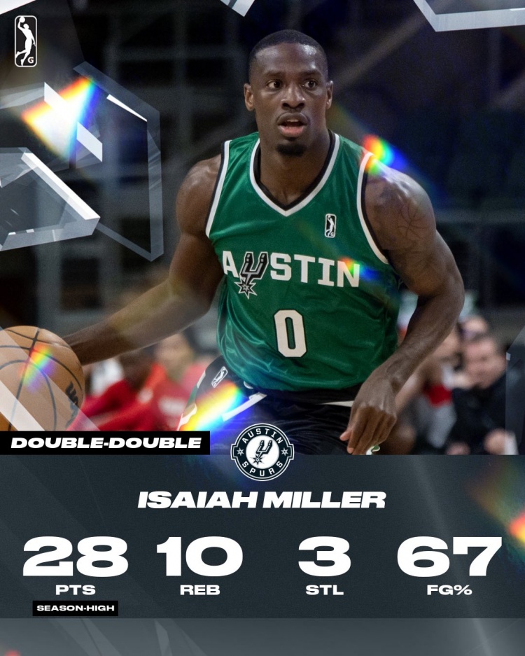 为续约比永博腾空间!马刺裁掉以赛亚-米勒 预计加入G联盟球队