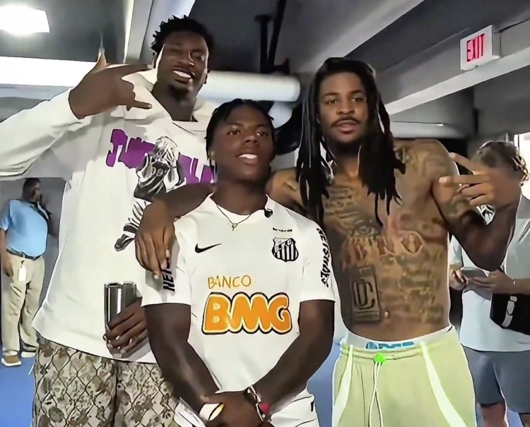 9月12日讯 甲亢哥IShowSpeed直播来到了孟菲斯,在这在孟菲斯和球星小贾伦-杰克逊还有莫兰特相遇,三人同框合影,...