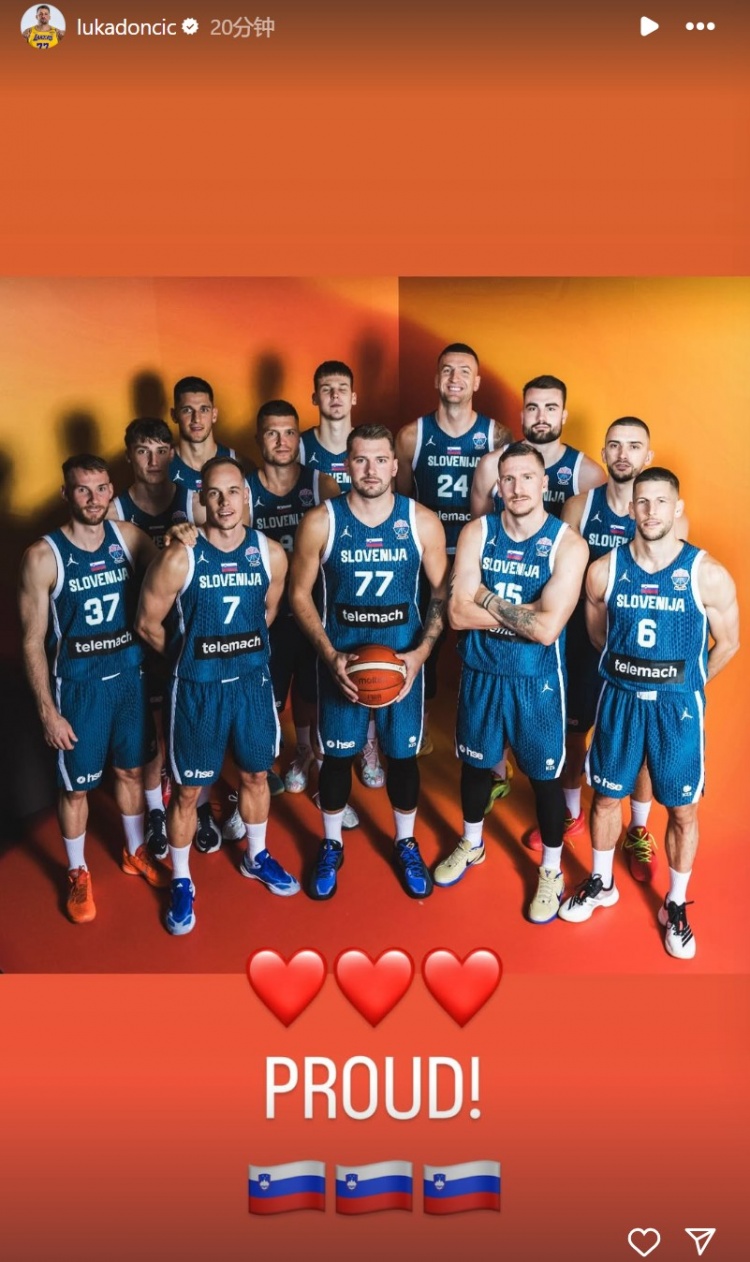 止步八强!东契奇INS晒全队合照:❤️为斯洛文尼亚感到骄傲