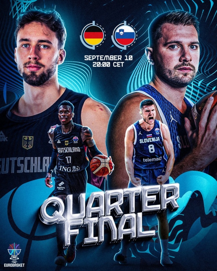 9月11日讯 男篮欧锦赛1/4决赛迎来一场强强对话,东契奇领衔的斯洛文尼亚对阵实力强劲的德国。比赛开始,两队开场便陷入缠...