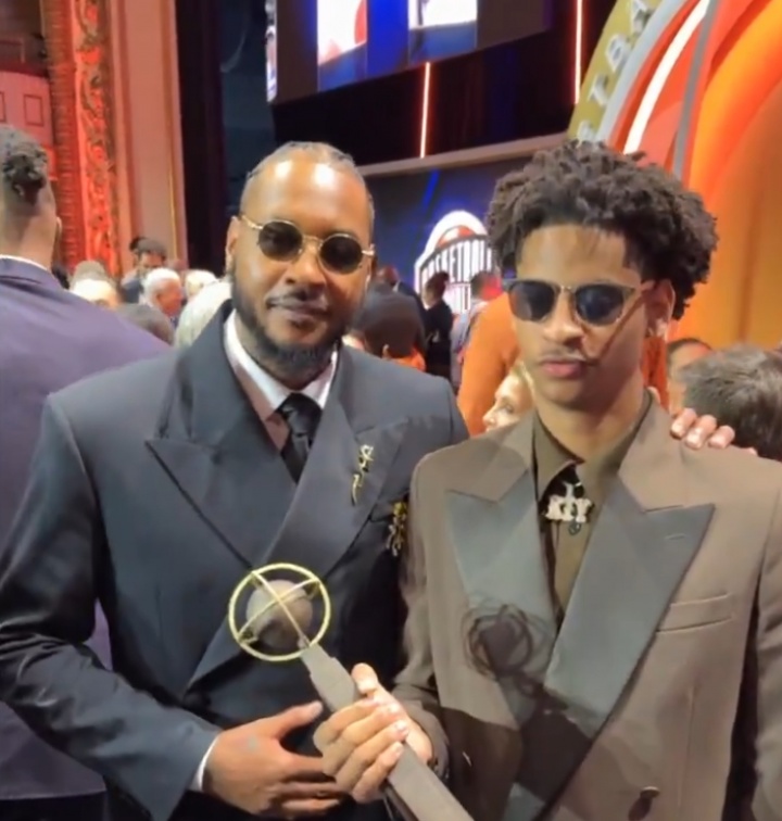 9月7日讯 今天,安东尼正式入选了名人堂。在这个荣耀时刻,安东尼和儿子基扬合影,拍照留念。基扬今年18岁,去年年底,他宣...