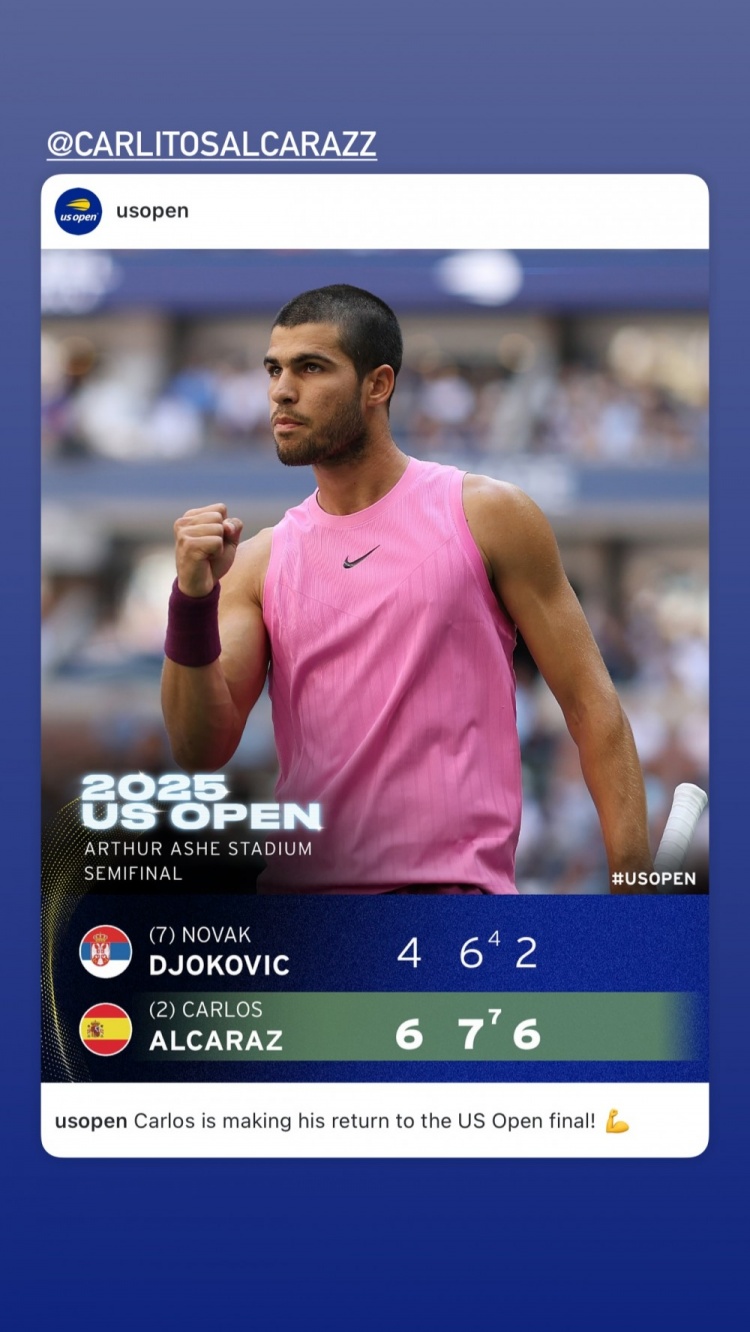 联动!巴特勒现场观看美网男单半决赛 转发阿尔卡拉斯获胜海报