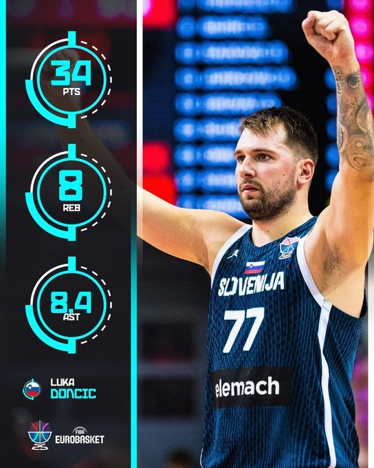 🏀东契奇37+11+9 阿夫迪亚34+9 斯洛文尼亚力克以色列