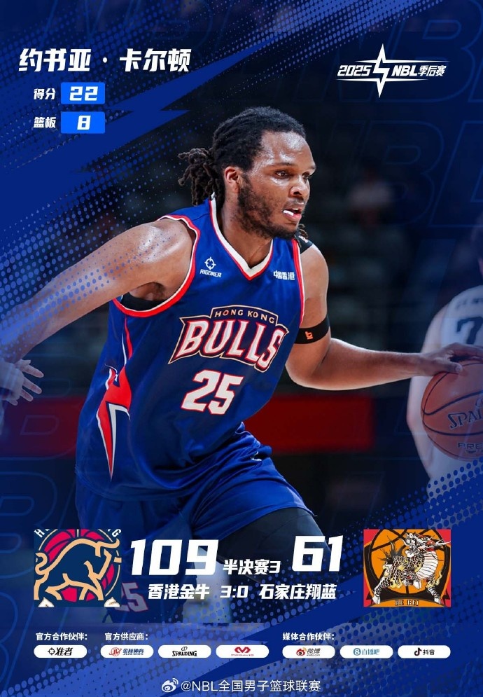 【战报】2025年NBL季后赛,半决赛中国香港金牛🆚石家庄翔蓝的系列赛G3今晚战罢,中国香港金牛109:61大胜对手,大...