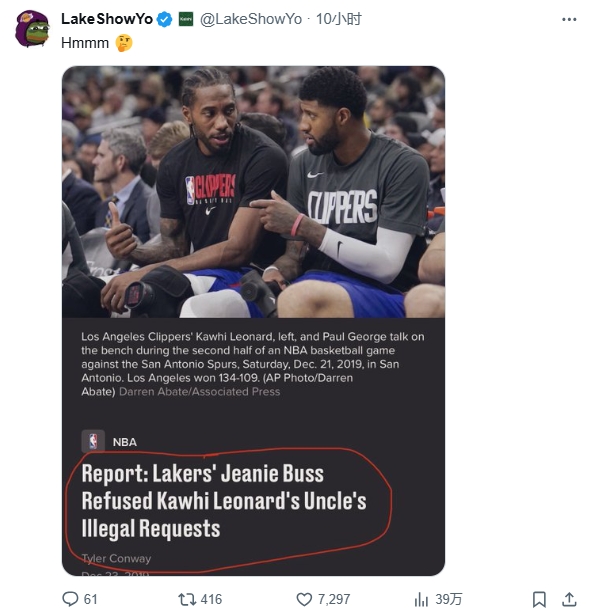 爆料记者:联盟今天得知快船情况后很慌 他们此前不知道这份合同