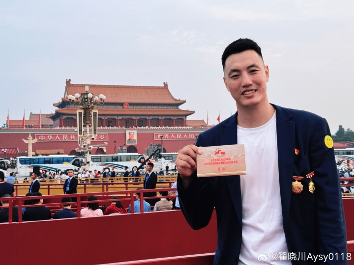 翟晓川今天参加阅兵仪式 戴北京青年榜样奖章和首钢劳动模范奖章