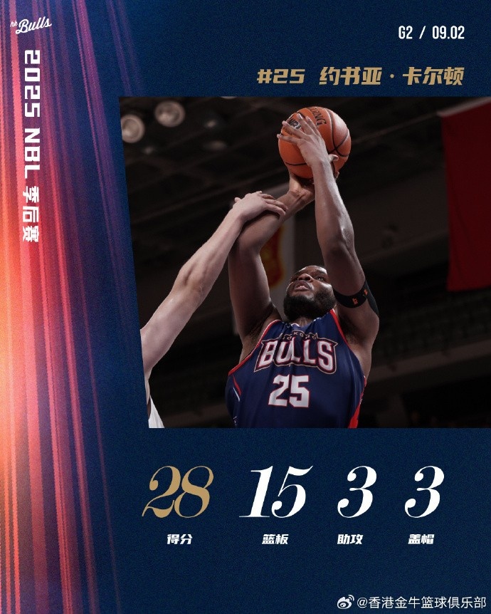 【战报】2025年NBL季后赛半决赛G2今日开打,香港金牛回到深圳主场,105:89战胜石家庄翔蓝。香港金牛卡尔顿得到2...