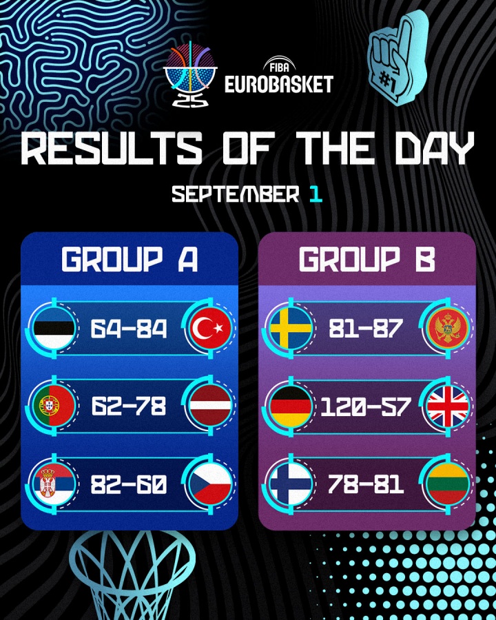 欧锦赛第6日赛果:德国狂胜英国63分 约基奇划水6+7 芬兰吞首败