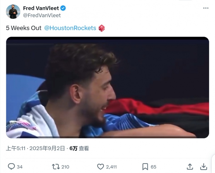 09月02日讯 火箭球员范弗里特今日更新动态。范弗里特晒出了申京欧锦赛场边舞动的视频,并预热新赛季:“还有5周@火箭🎲”...