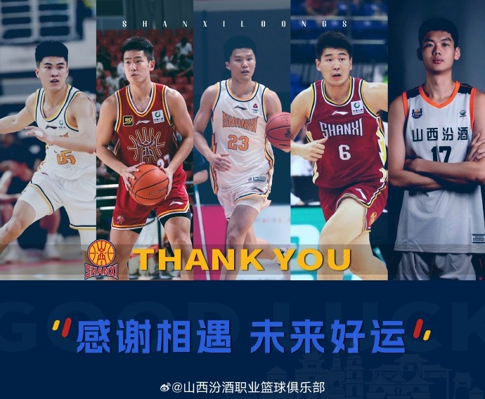 山西官方:刘冠岑、范汇鎏、宫子轩、焦钟毅、马聪离队!感谢付出