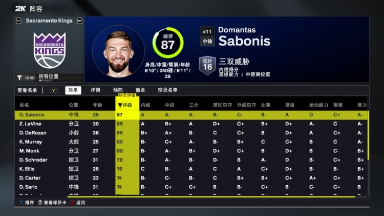 2K26国王球员能力值:小萨87最高 拉文&德罗赞85 新援施罗德78