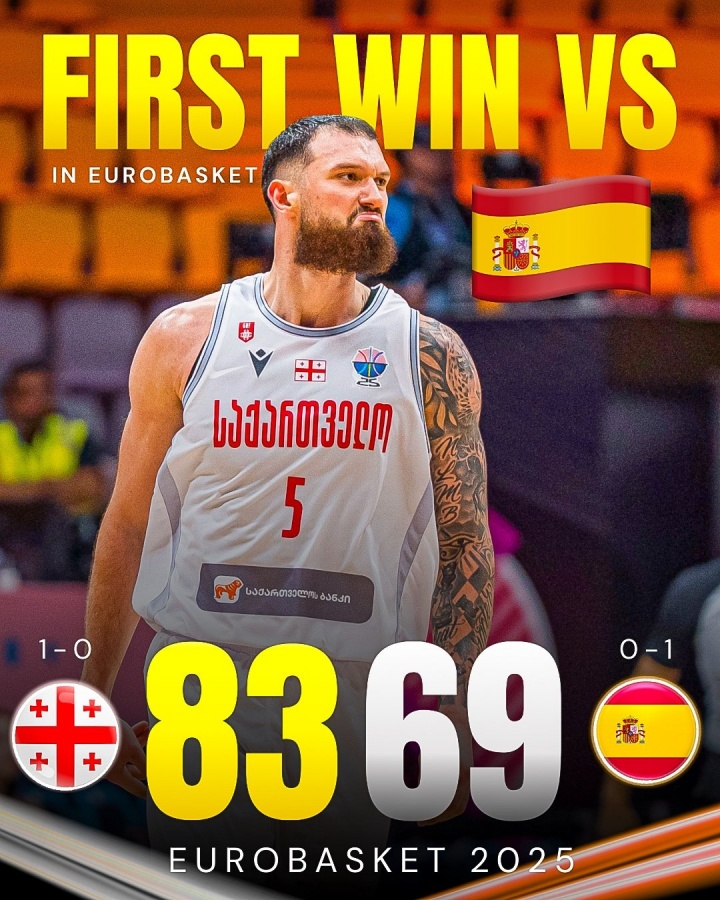 8月28日讯 男篮欧锦赛小组赛,格鲁吉亚83-69战胜西班牙。本场比赛,格鲁吉亚球员马穆凯拉什维利表现出色,场上十分全能...