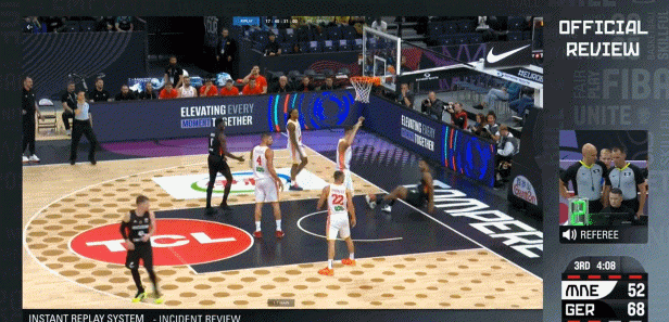 (西蒙诺维奇违体犯规送对方4次罚球,蒂曼4罚2中后德国还有球权)...