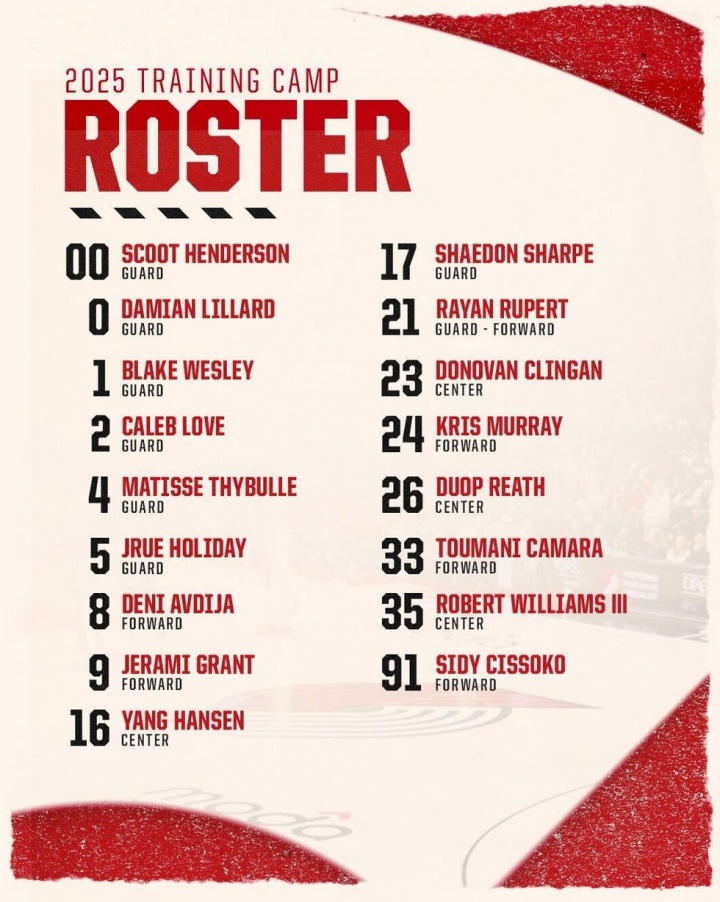 开拓者训练营名单:共17人 利拉德回归 杨瀚森在列