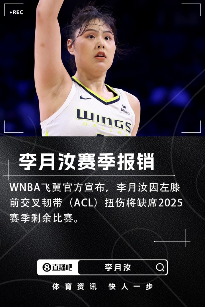 8月20日讯 WNBA飞翼官方此前宣布,李月汝因左膝前交叉韧带(ACL)扭伤将缺席2025赛季剩余比赛。本赛季,李月汝先...