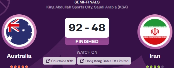 08月17日讯 2025年男篮亚洲杯半决赛,澳大利亚92-48大胜伊朗,进入决赛。男篮亚洲杯决赛将于北京时间8月18日0...