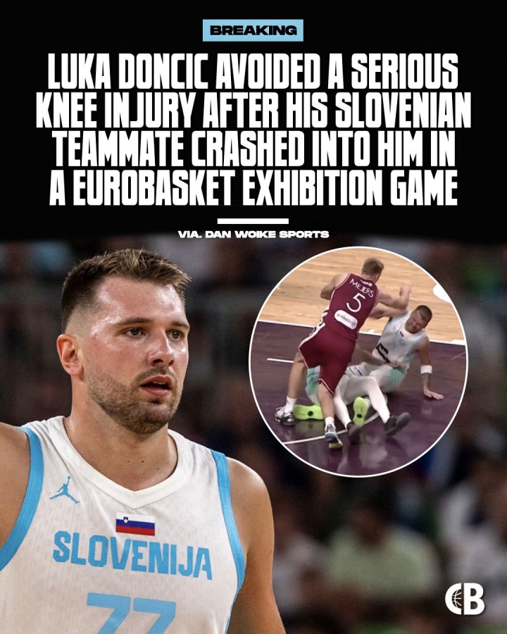 08月17日讯 欧锦赛男篮热身赛,斯洛文尼亚88-100不敌拉脱维亚,东契奇被队友撞翻在地。东契奇短暂回到了更衣室检查,...