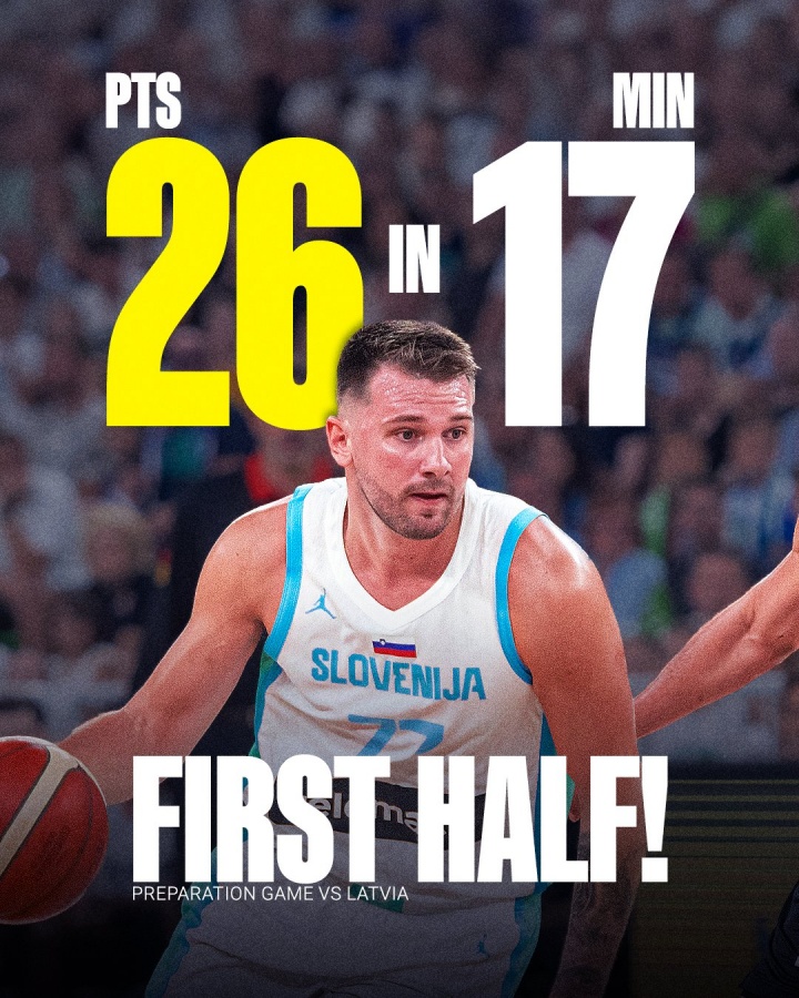 08月16日讯 今日欧锦赛热身赛,斯洛文尼亚对阵拉脱维亚。连续缺阵两场热身赛后,斯洛文尼亚前锋卢卡-东契奇在今晚迎来复出...