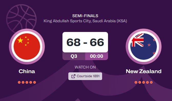 激烈!中国男篮和新西兰第三节战成26平 三节结束时分差还是两分
