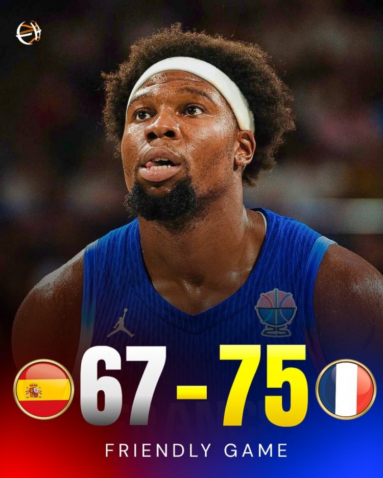 热身赛法国75-67西班牙 亚布塞莱&里萨谢12+5 埃尔南戈麦斯15+5