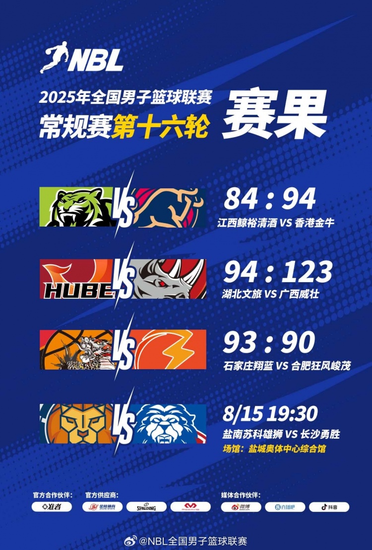 🏀NBL战报-广西威壮大胜湖北文旅 石家庄翔蓝险胜合肥狂风峻茂
