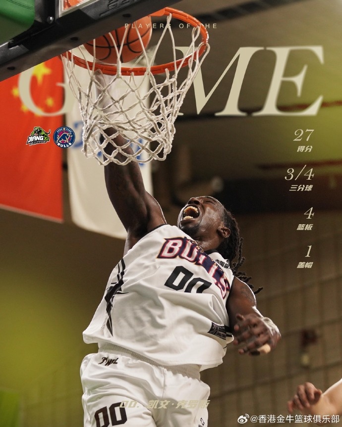 四人得分上双!香港金牛昨晚在客场战胜江西鲸裕清酒!其中,克罗斯三分球4投3中,高效砍下27分4篮板1盖帽,卡尔顿稳定发挥...