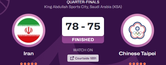 伊朗末节发力21分逆转中国台北晋级四强!下场对阵澳大利亚!