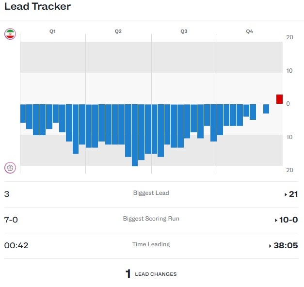 太可惜了!中国台北全场领先了38分05秒 伊朗仅领先最后42秒