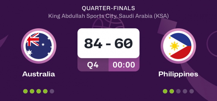 男篮亚洲杯:澳大利亚24分大胜菲律宾!率先进入四强!