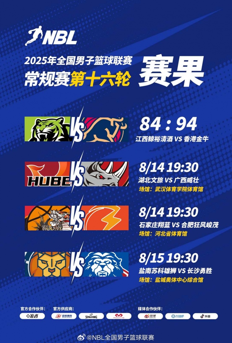 【战报】2025年NBL常规赛第16轮今日打响。全明星归来首战,江西鲸裕清酒84:94不敌香港金牛。江西对阿普肖三世得到...