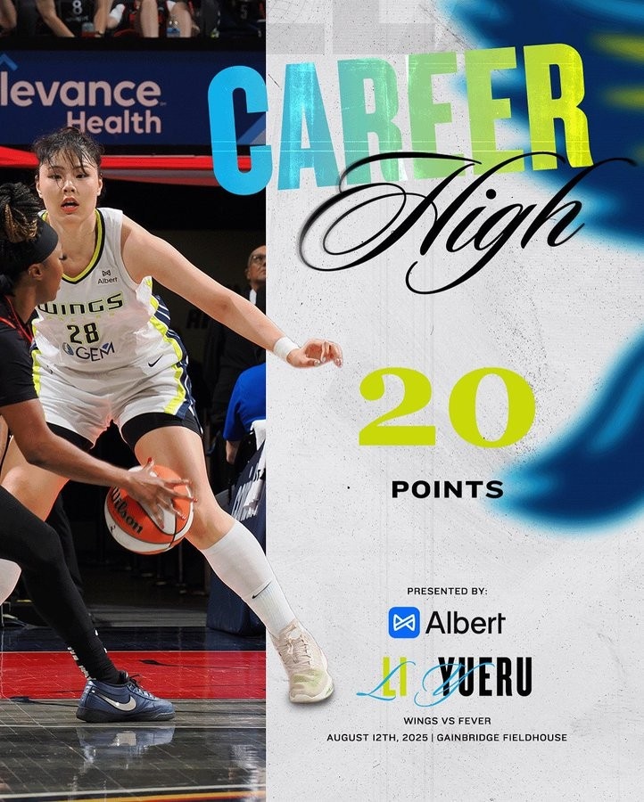 夸一夸!达拉斯飞翼发李月汝数据海报:多才多艺的大个子砍下20+4